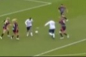 鲁尼为英格兰队首开记录,他在禁区内机智捕捉到机会,面对对方球员(含女足)的防守,果断推射破门。