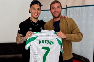 罗马诺通过社交媒体晒出与安东尼的合照并写道:“今天在塞维利亚与我的兄弟安东尼相见,何等欣喜!看到你在2025年至今精彩表现后展露的笑容与快乐,实在太好了…继续前进!"