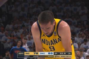 体育资讯06月17日讯 总决赛天王山之战,三节结束,步行者79-87落后雷霆8分。