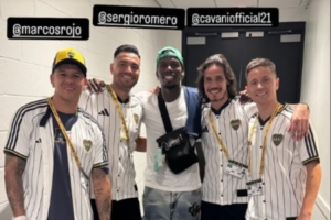博格巴与罗霍、罗梅罗、卡瓦尼、埃雷拉四人合影,并配文写道:“见到老朋友们真开心。”