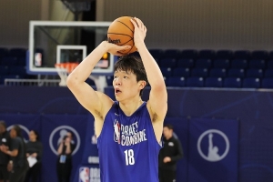 体育资讯6月17日讯 Bleacher Report选秀专家Jonathan Wasserman今天更新了他的模拟选秀排名,其中杨瀚森在第40顺位被奇才选中。