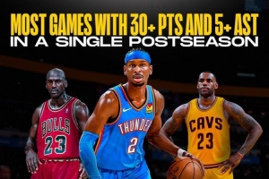 加上这场比赛,亚历山大今年季后赛已经12次砍下至少30+5助,他这项数据排名NBA历史第1,力压乔丹和詹姆斯。乔丹和詹姆斯曾做到过单次季后赛11次砍下至少30+5助。