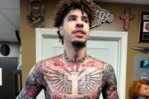 拉梅洛-鲍尔在胸前纹上了一句“Chosen One”,意为天选之子。