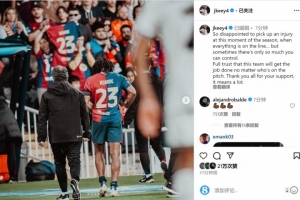 孔德在社交媒体上晒出自己因伤离场的照片,并写道:“在赛季的这个时刻受伤,我感到非常遗憾......但有时你能控制的事情不多。”