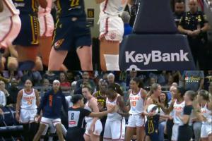 裁判回看录像后判罚克拉克技术犯规、玛丽娜-马布雷技术犯规、杰茜-谢尔登一级恶意犯规。