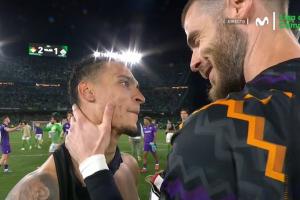 佛罗伦萨的守门员正是安东尼此前的队友德赫亚,面对这一脚世界波,德赫亚也无能为力,做出飞扑后回头跪地望向球门。在赛后,他还找到安东尼,亲切了摸了摸安东尼的脸。