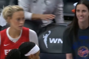 比赛中,凯特琳-克拉克被谢尔登+马布雷联手欺负了一次;