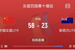 体育资讯6月18日讯 女篮四国赛十堰站,中国女篮U19半场已58-23领先新西兰U19女篮。
