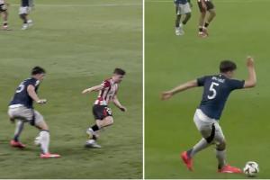 第30分钟,马奎尔面对毕尔巴鄂竞技中场豪雷吉扎尔,连续扣球后传中,乌加特前点头球摆渡,卡塞米罗头球接力破门。
