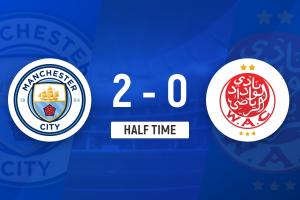 上半场伤停补时3分钟,半场结束,曼城暂2-0维达德。