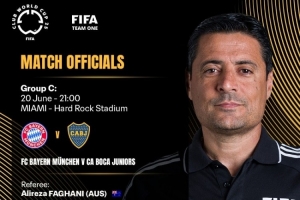 体育资讯6月19日讯 FIFA官方公布世俱杯(当地时间)20日四场比赛裁判安排,马宁为弗拉门戈vs切尔西一役第四官员,法加尼执法拜仁vs博卡。