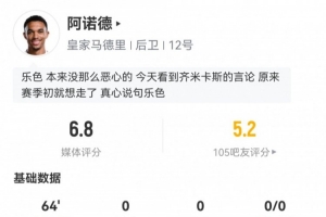 体育资讯6月19日讯 新世俱杯首轮,皇马暂1-1新月。此役阿诺德皇马首秀首发64分钟被换下,球员全场重点数据如下↓