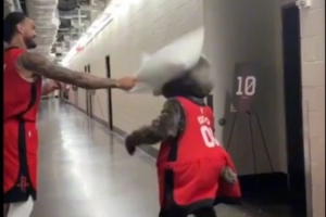 火箭熊官方推特晒出自己与亚当斯“互殴”视频欢迎后者回归,并配文:“欢迎回来@亚当斯,不过我们需要再打一场🥊!”