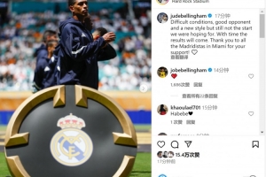 贝林厄姆社媒写道:“艰难的条件、出色的对手以及新的比赛风格,但这仍不是我们所期待的开局。随着时间的推移,(好)成绩会到来,感谢迈阿密的所有皇马球迷对我们的支持!”