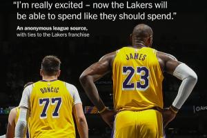 据知名媒体The Athletic报道,一位与湖人队有联系的联盟匿名消息人士表示:“我真的很兴奋,现在湖人终于能像他们该有的样子花钱了。”