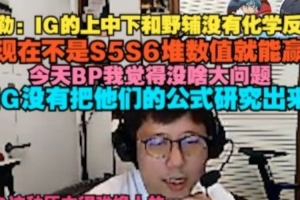 赛后解说米勒复盘本场比赛,直言:IG的上中下和野辅没有化学反应,现在不是S5S6堆数值就能赢,今天BP我觉得没啥大问题,IG没有把他们的公式研究出来,IG这种压力很难换人的。