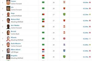 体育资讯06月19日讯 德国转会市场更新中超球员身价,中超球星身价大体呈现下降趋势,最新的中超前十身价仍被外援霸占,仅塞尔吉尼奥一名中国籍球员入列。