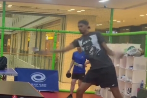 体育资讯6月19日讯 今日,抖音博主“大雪山”分享了马刺球星文班亚马与一名球友打乒乓的视频。