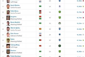 转会市场网2025年中期中国身价例行更新今天完成。球员方面,克雷桑身价下降到400万欧元。但仍然高居中超身价榜首位。北京国安中场球员古加涨到350万欧元,与上海海港球员莱昂纳多并列第二。以200万欧元并列第四的球员有四位,分别是青岛西海岸的里切利和阿齐兹、成都蓉城的罗慕洛和上海海港的维塔尔。天津津门虎的阿代米、上海申花的米内罗以180万欧元并列第8。北京国安的法比奥和中国国脚塞尔吉尼奥以170万欧元并列第10。
