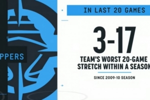备注:2009-10赛季快船最终取得29胜53负战绩