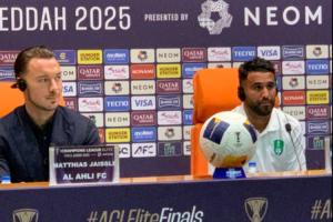 体育资讯05月02日讯 北京时间5月4日0点30分,亚冠精英联赛决赛,吉达国民vs川崎前锋,赛前吉达国民边锋马赫雷斯出席发布会。