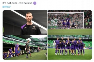 佛罗伦萨门将德赫亚在社交媒体上晒出比赛照片,并写道:“一切尚未结束——我们相信。”