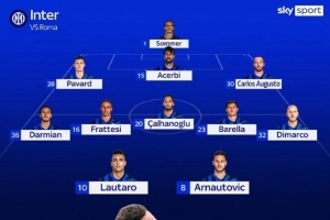 体育资讯4月27日讯 北京时间今晚9点,意甲第34轮国米主场对阵罗马,天空体育对此役国米首发做出预测。