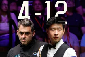 体育资讯05月02日讯 斯诺克世锦赛半决赛第二阶段,赵心童单阶段8-0零封奥沙利文,12-4领先对手。