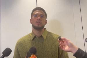 记者表示他看到布克在那个判罚后与裁判聊了会儿,布克则是表示:“他是说我打到詹姆斯的手腕了,这是在说谎,我回看了的。”