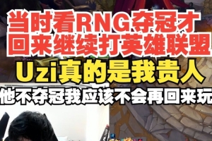 但是我是看了RNG夺冠我才回来玩的,感觉乌兹是我的贵人,乌兹真是我的贵人,他不夺冠我应该,不会再回来玩英雄联盟,我应该去玩别的游戏去。
