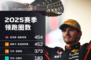 体育资讯12月17日讯 根据F1官方统计,维斯塔潘是今年领跑圈数最多的车手,他一共领跑454圈。