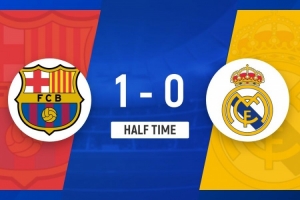 上半场补时分钟。半场战罢,巴萨1-0皇马。