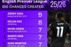 体育资讯12月19日讯 数据机构squawka统计了本赛季英超创造重大机会榜和运动战创造重大机会榜,多库同时领跑这两项榜单。