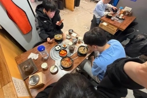 🤖日记:和香克斯金珍洪走路下班回宿舍🚶🏻♂️🚶🏻♂️🚶🏻♂️走着走着香克斯说想吃热热的汤饭🥘🍚带他吃了米肠汤 他说舒服饱了