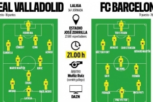 体育资讯5月3日讯 巴萨将在本周末的西甲客场对阵巴拉多利德,《每日体育报》也对巴萨首发进行了预测。