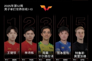 体育资讯12月23日讯 国际乒联公布2025年第52周世界排名,王楚钦、孙颖莎领跑男女单打,国乒包揽女单前五。