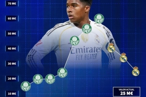 体育资讯12月24日讯 德国转会市场在推特发动态,晒出了恩德里克的身价走势。
