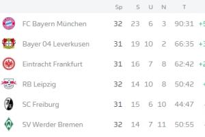 若按此比分结束,拜仁32轮将积75分,暂时无法确保提前夺冠。目前第二名勒沃库森理论最高积分为76分,由于拜仁手握净胜球优势,因此现实来讲拜仁只需要1分即可夺冠。