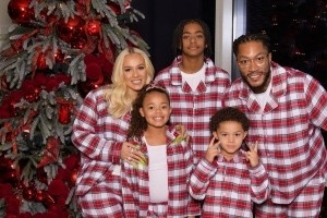 体育资讯12月26日讯 德里克·罗斯的妻子Alaina Rose晒出了一家人的圣诞合照。