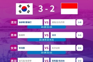 体育资讯5月3日讯 在刚刚结束的苏迪曼杯羽毛球团体赛半决赛中,韩国队3比2击败印尼队,晋级决赛,将与国羽争冠。