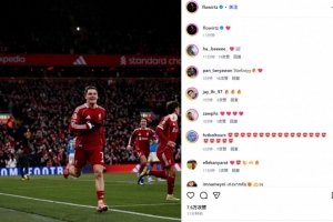 数据统计显示,维尔茨在英超共计已出场17次、尝试21脚射门,终于收获红军生涯英超首球。他也在赛后通过社媒晒出自己的庆祝照,并配上了❤️表情符号。