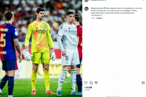库尔图瓦赛后也在个人社媒发文鼓励球队,写道:“为我的队友感到骄傲,我们拼尽全力争取胜利可惜没能做到。感到难过和自责,但是请相信我们会再次站起来。”