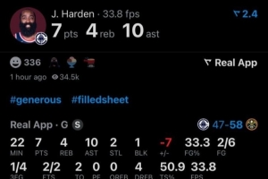 据统计,哈登半场送出10次助攻,已经创造了NBA play by play时代(自1996-1997赛季至今)抢七大战半场助攻纪录!