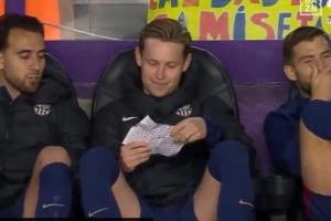DAZN拍到德容在替补席拿着巴拉多利德球迷扔的假钞看,还笑着表示要放进口袋里。