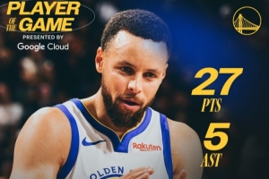 赛后勇士官方评选出本场最佳球员,砍下全队最高分的库里当选。