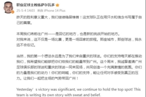 体育资讯5月4日讯 在中甲联赛第7轮的首个比赛日中,重庆铜梁龙2-1战胜定南赣联,并继续稳坐积分榜榜首的位置。赛后铜梁龙主教练萨尔瓦多更新微博,并谈到接下来要前往广州的旅程。