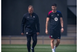 莱万能否及时恢复出战此役,成为媒体和球迷更关注的问题。巴萨官方更新社媒动态,晒出莱万在训练场上与弗里克的合照,确认这位波兰前锋今日恢复合练。