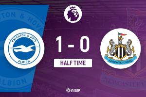 上半场比赛结束,布莱顿1-0纽卡斯尔联。