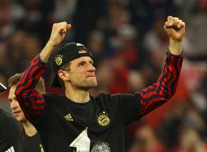 体育资讯5月5日讯 勒沃库森客场2比2战平弗赖堡,拜仁提前两轮夺冠。穆勒13次赢得德甲冠军,职业生涯赢得34座奖杯。