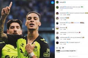 安东尼赛后社媒晒出自己的比赛照片,并写道:与你们一起实现我的梦想!!💚🤍